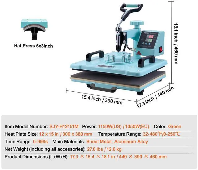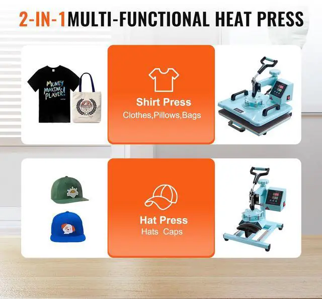 VEVOR Heat Press Machine 12x15 in 2 in 1 Heat Transfer Machine for T-Shirts Hats Multifunctional Heat Press More Efficient, More Secure Dual Tube Heating User-Friendly