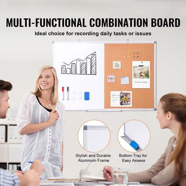 • VEVOR 36"x 24" Whiteboard & Cork Board Combo with Aluminum Frame 2-in-1 Magnetic Dry Erase Bulletin Board for Wall Mount Ideal for School, Home, Office