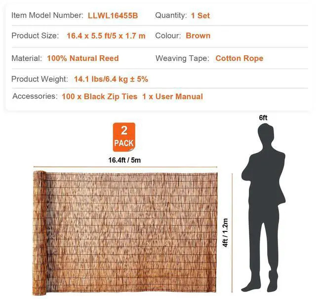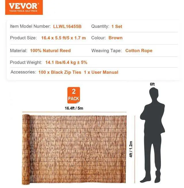 VEVOR 2-Pack Reed Fence Landscaping Privacy Blind Fencing Screen 16.4 ' x 4' Enhance Natural Beauty High Privacy Easy to Cut Simple Installation Versatile Use