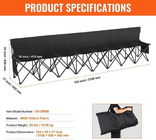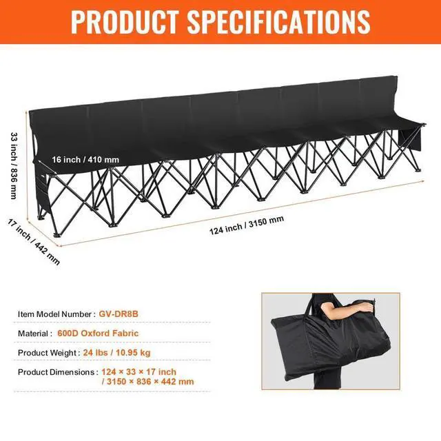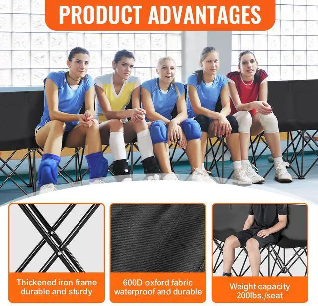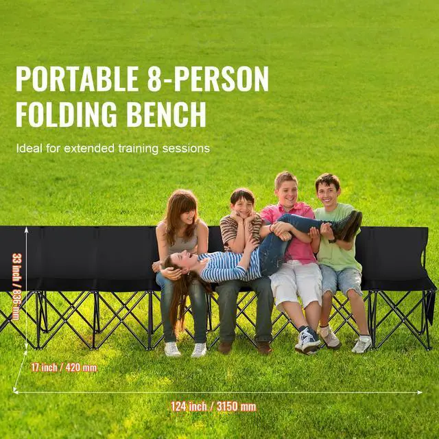 VEVOR 8 Seat Portable Folding Sport Bench Outdoor Camping Chair with Carry Bag Comfortable Seating Safe and Stable Multiple Options Easy to Fold and Move Wide Application Humanized Design Item