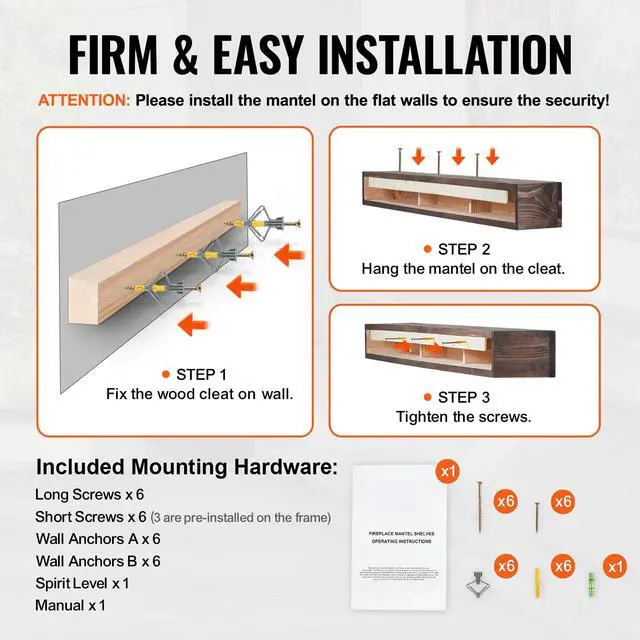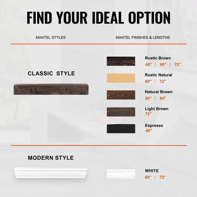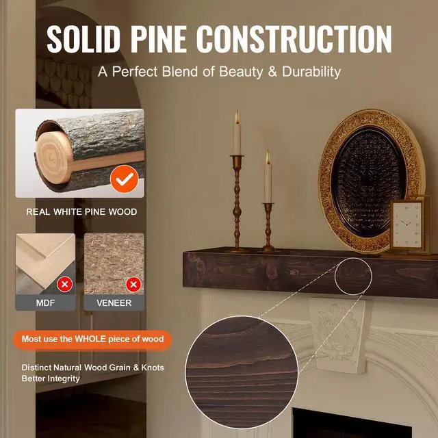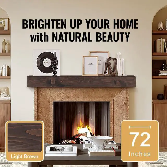 VEVOR Fireplace Mantel Wood Shelf Floating Rustic Mantel Shelf 72" Light Brown Warm & Grace Detailed