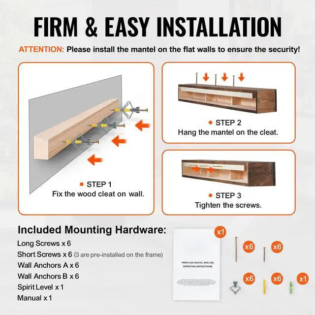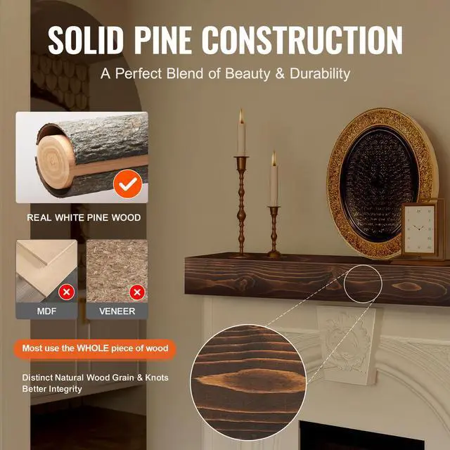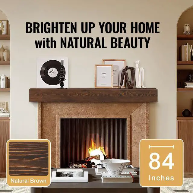 • VEVOR Fireplace Mantel Wood Shelf Floating Rustic Fireplace Mantel 84" Brown