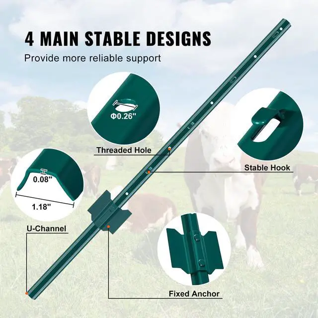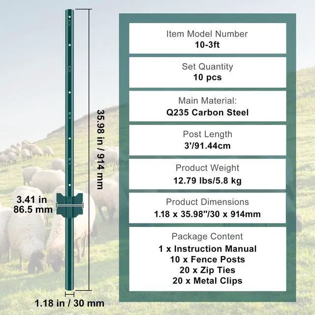 VEVOR 3 Feet Fence Post 10 Pack T-Post Heavy Duty Metal Fence Posts Green Sturdy & Durable Fence Post High Corrosion Resistance Reliable Support Easy Installation Versatile Application