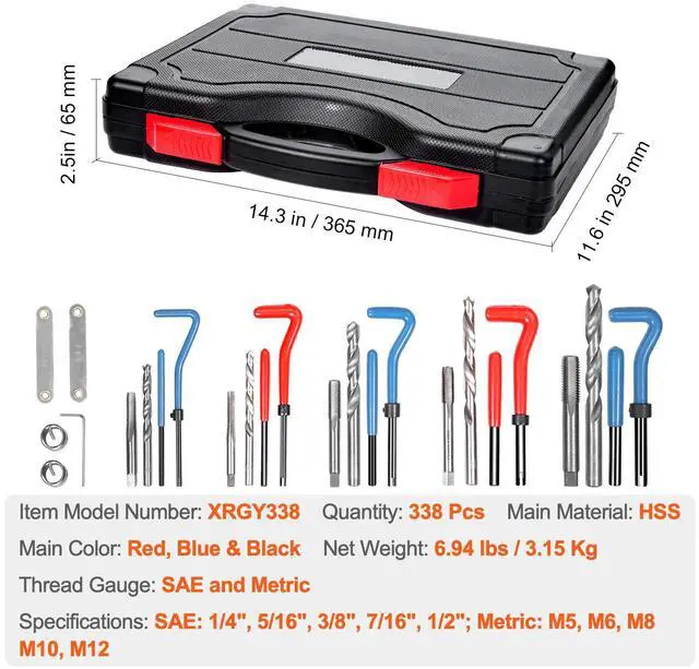 VEVOR Helicoil Thread Repair Kit 338-Piece SAE and Metric Rethreading Tool Kit Your Reliable Repair Assistant Complete Accessories for Every Need Effortless Operation Premium Quality Materials Versatile for Various Applications Comfortable and Reliable
