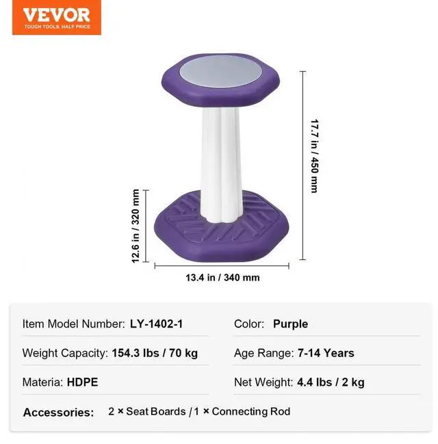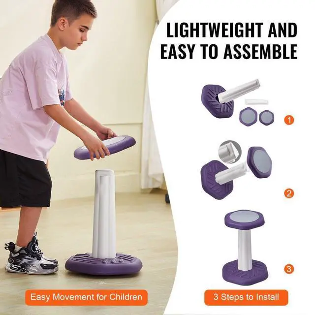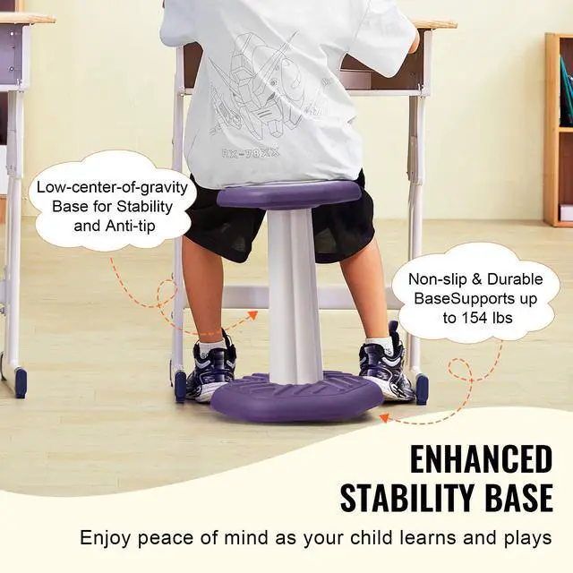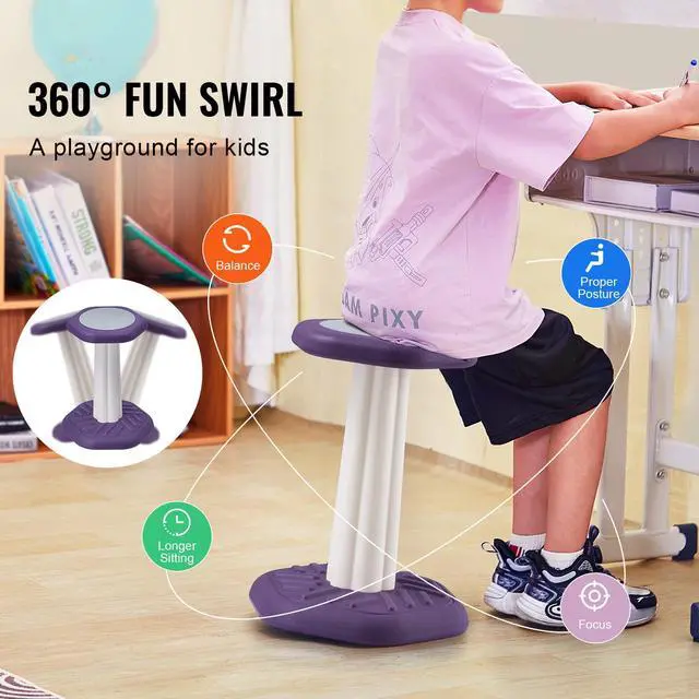 VEVOR Kids Wobble Chair, Active Chair with Sponge Cushion, Wobble Stool Improves Focus, Posture and Calm Children, Ideal for Schools and Home, Age 7-14, Purple Sensory Training Wobble Chair 360°Swing Design Built for Safety Easy to Assemble and Move Versatile Use Multiple