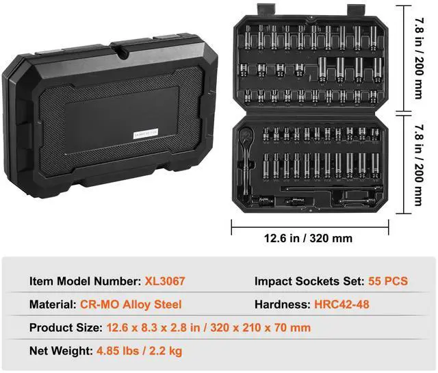 Model Number: XL3067, Quantity: 55 PCS, Material: CR-V Alloy Steel, Hardness: HRC42-48,
