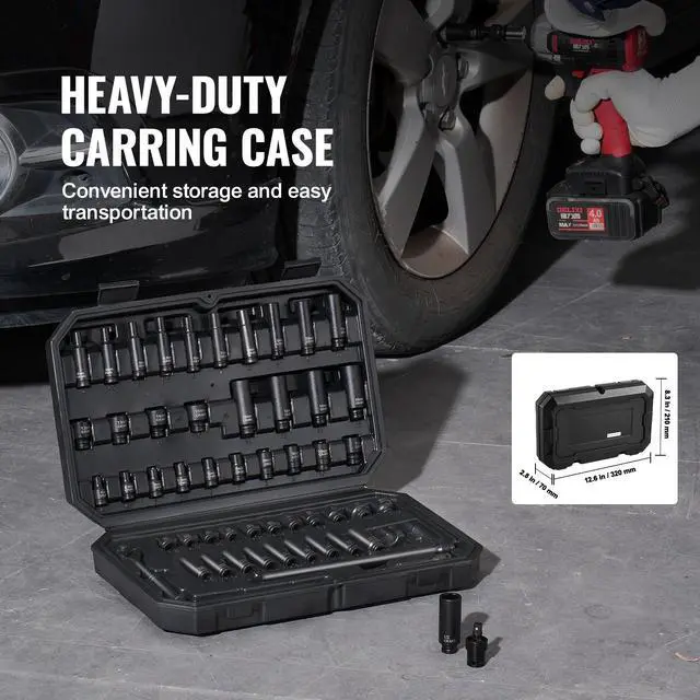 VEVOR Impact Sockets Set 55pcs 6-Point 1/4" Drive Bit Ratchet Tool Kit Case Rugged and Durable Complete