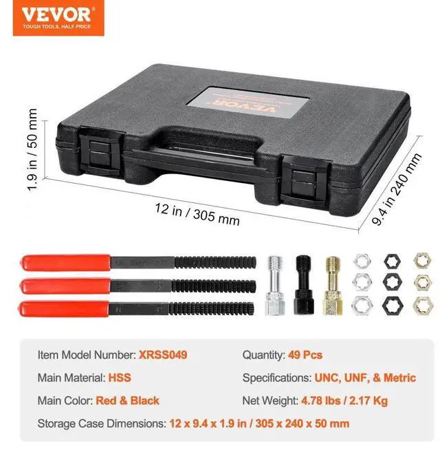 VEVOR 49PCS Thread Chaser Set UNC UNF Metric Thread Restorer Tool Rethreading Your Reliable Repair Assistant Complete Accessories for Every Need Effortless Operation Premium Quality Materials Versatile for Various Applications Safety Protection
