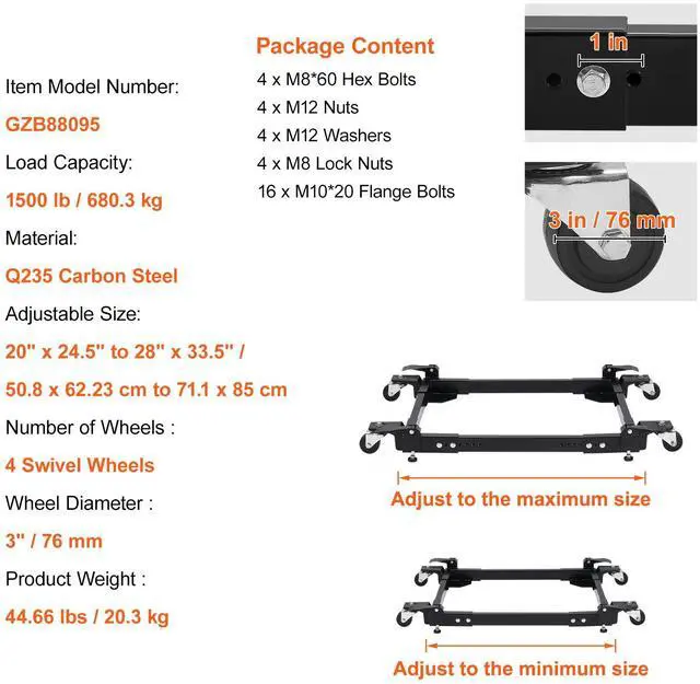 VEVOR Mobile Base Heavy Duty Universal Stand 1500 lb Capacity For Tools Machines Tough as Nails Rollin' Like a Dream Fit it Your Way No Sweat Setup Your Go-To for Everything Shake-Free & Secure