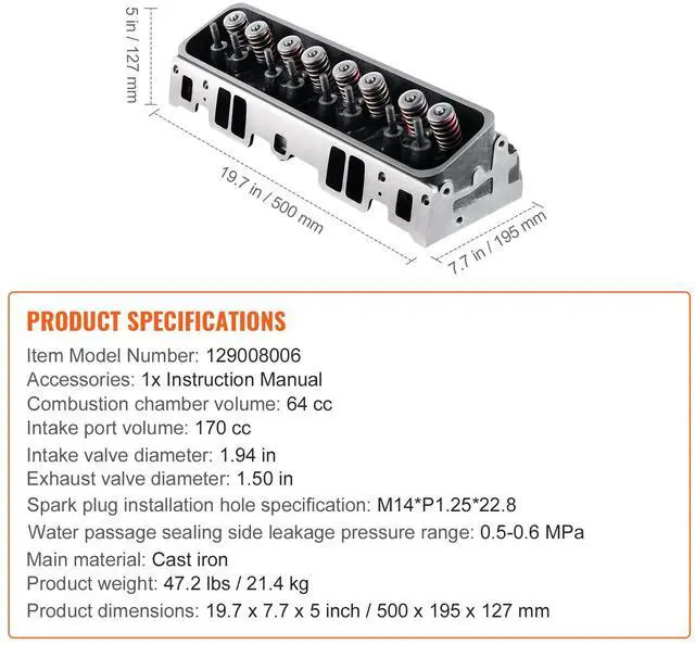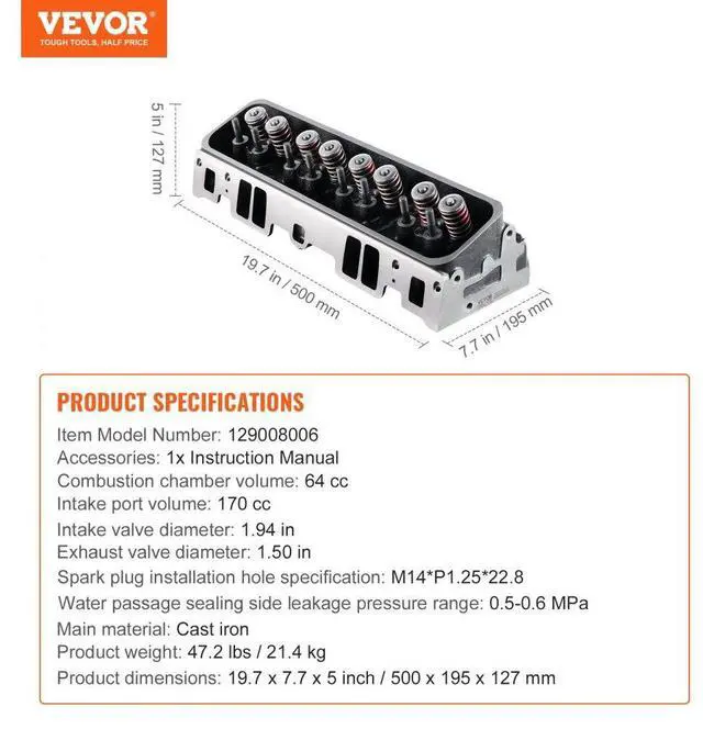 VEVOR Engine Cylinder Head Assembly Replacement Iron for CHEVROLET ESCALADE GMC Wide Compatibility High Manufacturing Precision High-Strength Cast Iron Complete Parts Enhanced Fuel Efficiency Usage Tips