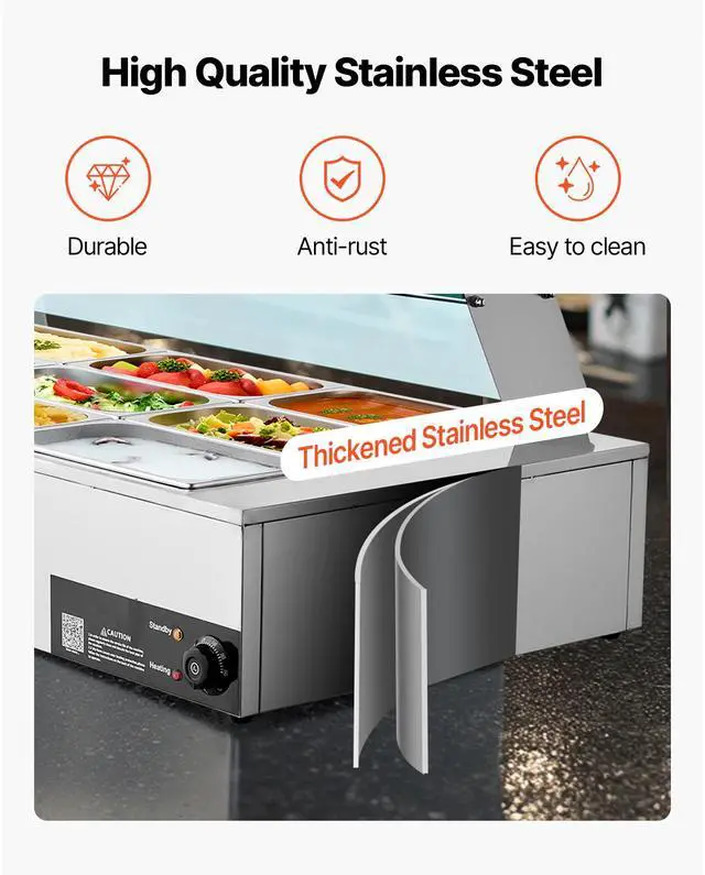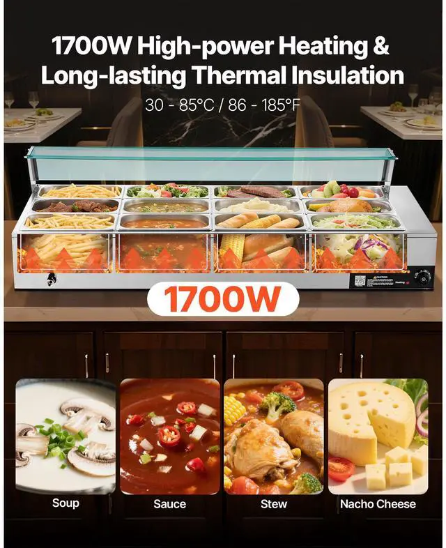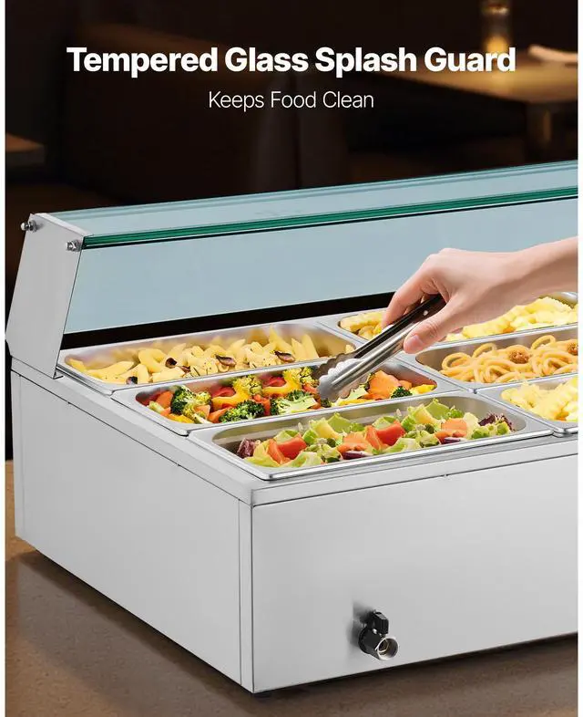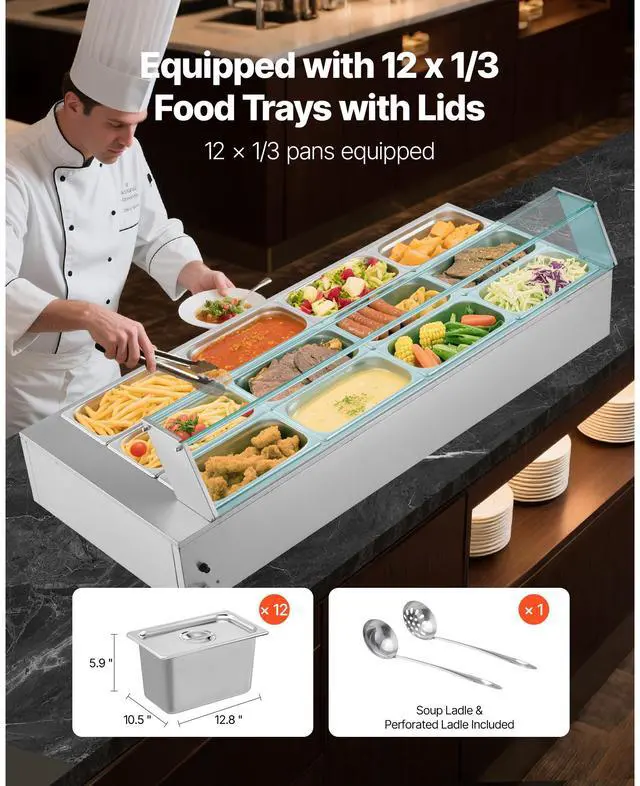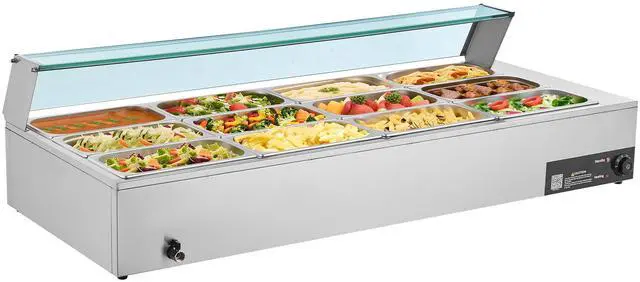 VEVOR Commercial Electric Food Warmer Countertop Buffet 12*8Qt with Glass Shield Commercial Food Warmer with Glass Cover Includes 12 Pan Adjustable Temperature Dry-Burn Protection System Versatile Usage Wide