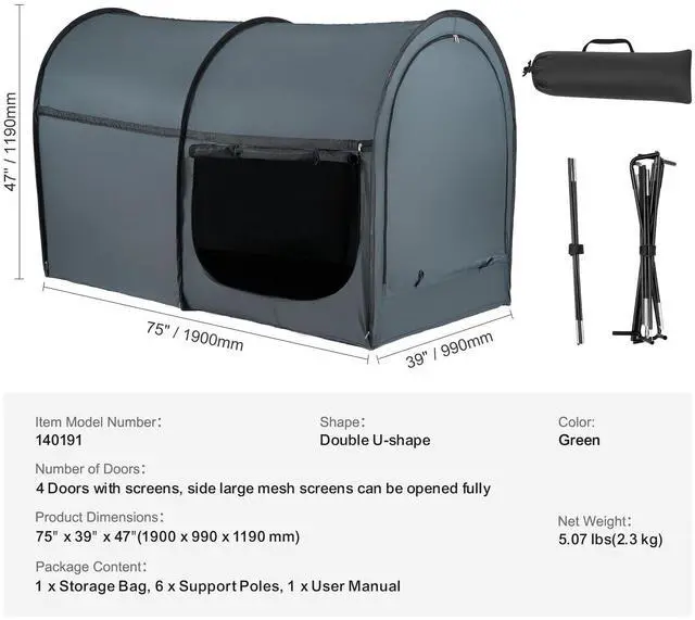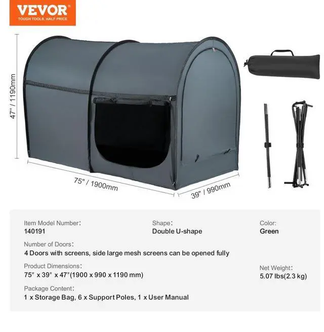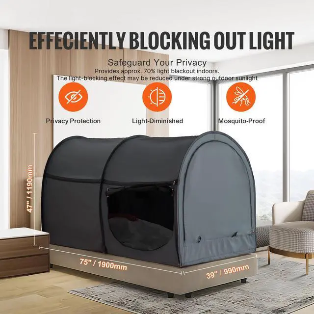 VEVOR 4 Doors Bed Tent Breathable Tent Light Blackout with 0.28 in Fiber Poles Four-Door Privacy Tent Adjustable Light Control Spacious and Comfortable Quick and Easy Setup Versatile Use Handy
