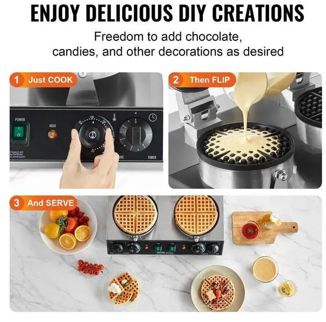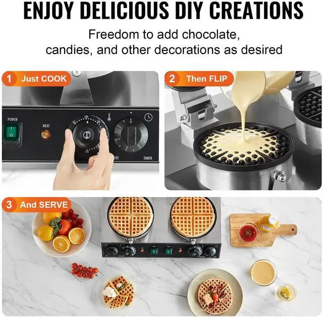 • Quickly Make Delicious Waffles: Our 2460W high-power round waffle maker can easily produce a 1-inch thick waffle in just minutes, crispy on the outside and fluffy inside, saving you time and providing an effortless breakfast. Evenly distributed heating elements ensure your waffles are uniformly baked. Get ready to enjoy delicious waffles filled with your favorite toppings.