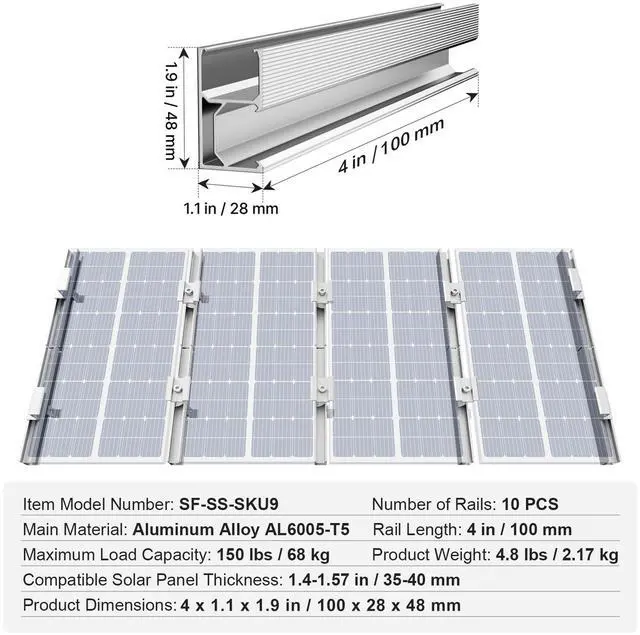VEVOR Solar Panel Mounting Brackets Solar Panel Mounting Kit for Various Roofs Complete Mounting Kit Easy and Hassle-Free Installation Secure Installation Enhanced Ventilation and Heat Dissipation Durable Aluminum Construction Ideal for Various