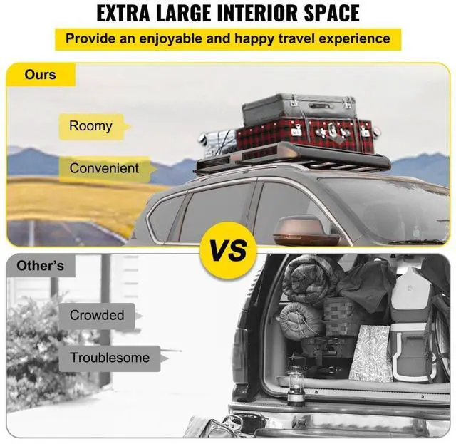 VEVOR Black Aluminium Roof Rack Basket Tray Luggage Cargo Carrier with Bars XL-B Aluminium Alloy 150 LBS Capacity Easy to Install Free up Space Calm And Fashionable