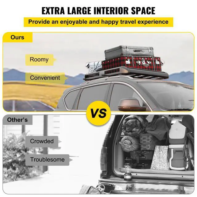 VEVOR Black Aluminium Roof Rack Basket Tray Luggage Cargo Carrier with Bars XL-B Aluminium Alloy 150 LBS Capacity Easy to Install Free up Space Calm And Fashionable