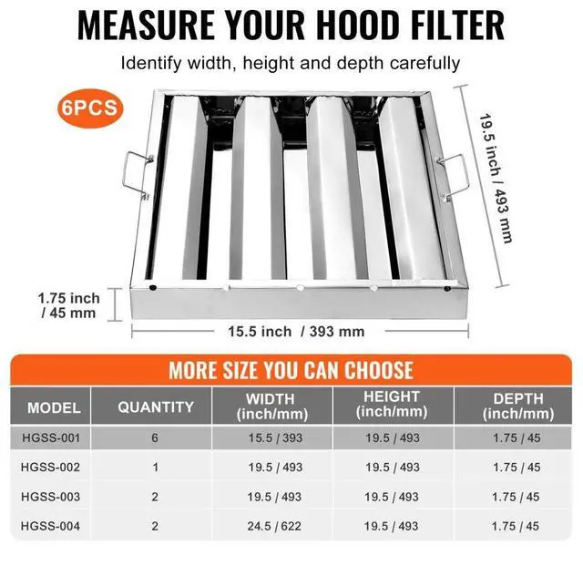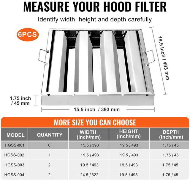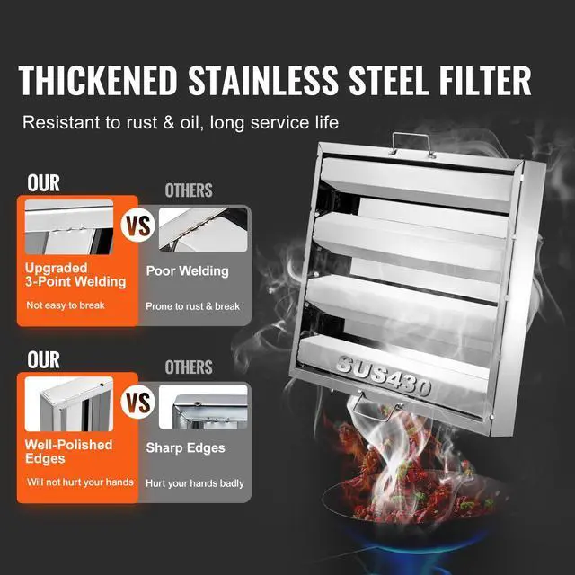 VEVOR 15.5W x 19.5H Inch Commercial Hood Filter Range Hood Baffle Stainless Steel Built to Last Thoughtful