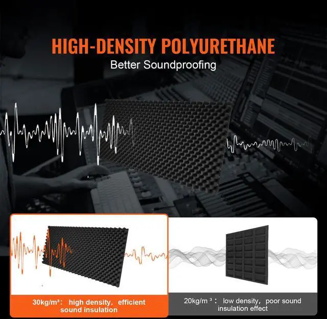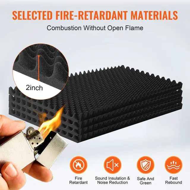 VEVOR Acoustic Foam Panels 4 Pack 48 x 24 x 2 in for Studio Wall and Ceiling Soundproofing and Noise Reduction High-Density Polyurethane Versatile Application Various Shapes Wide Application Easy to