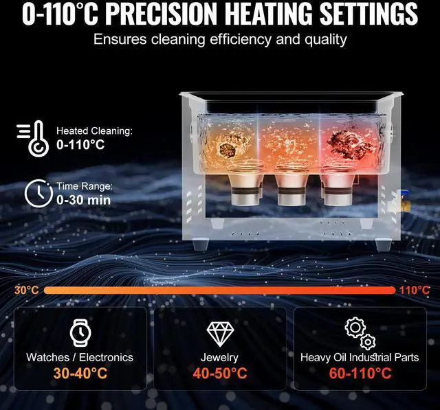 VEVOR 15L Ultrasonic Cleaner with Heater Timer & Basket Digital Sonic Machine Professional Ultrasonic Cleaning Technology Advanced Transducer Technology High-Quality 304 Stainless Steel Knob Operation Wide Applicability Outstanding Structural