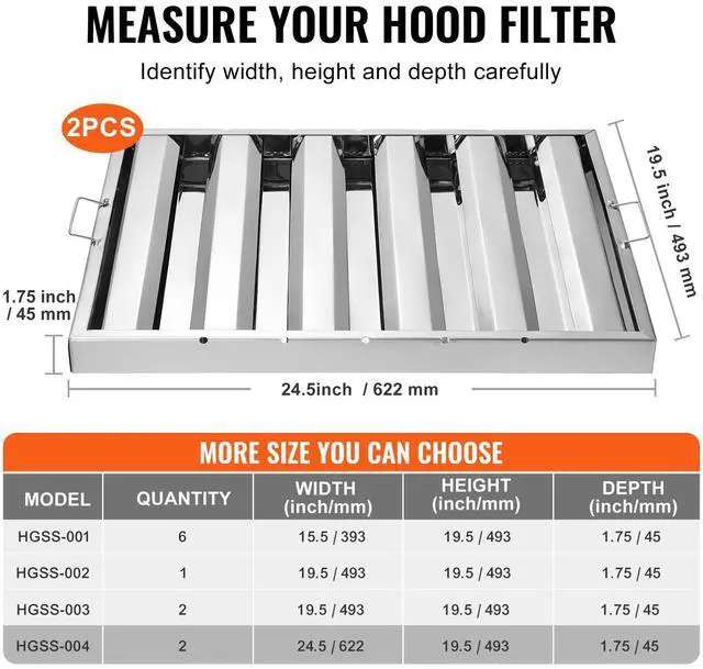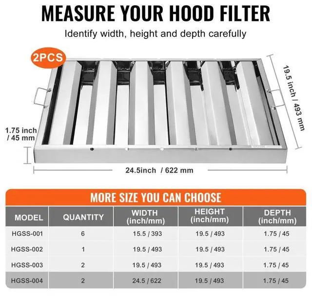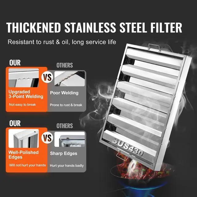 VEVOR 24.5W x 19.5H Inch Commercial Hood Filter Range Hood Baffle Stainless Steel Built to Last Thoughtful
