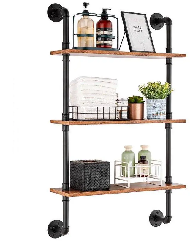VEVOR Industrial Pipe Shelf 3 Tier 24x 7.87 in Wall-Mount for Kitchen Bedroom Rustproof and durable Easy to clean and maintain Multi-functional Tool Easy Installation Suitable for many wall surfaces Easy to assemble
