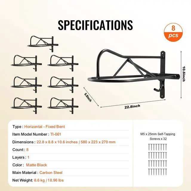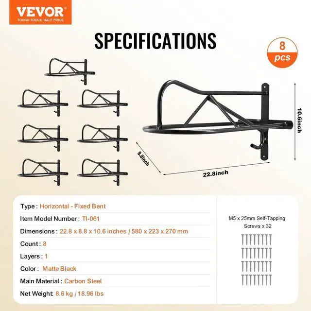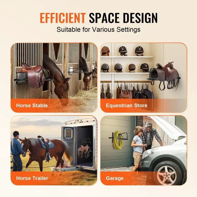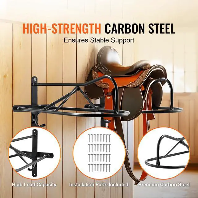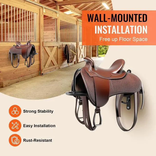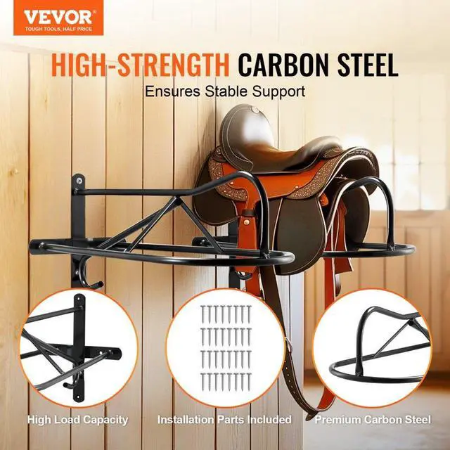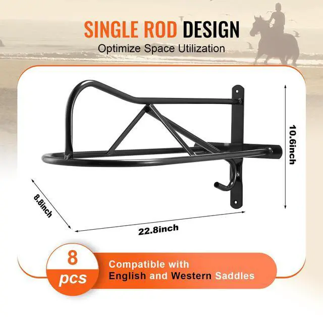 VEVOR Wall Mount Saddle Rack with Pad Bar 8 Packs Horse Saddle Rack Stand User-Friendly Durable Protection Quick Installation Organized Storage Wide Compatibility Full Welding Craftsmanship Type: Eight-piece set, Color: Matte Black, Item