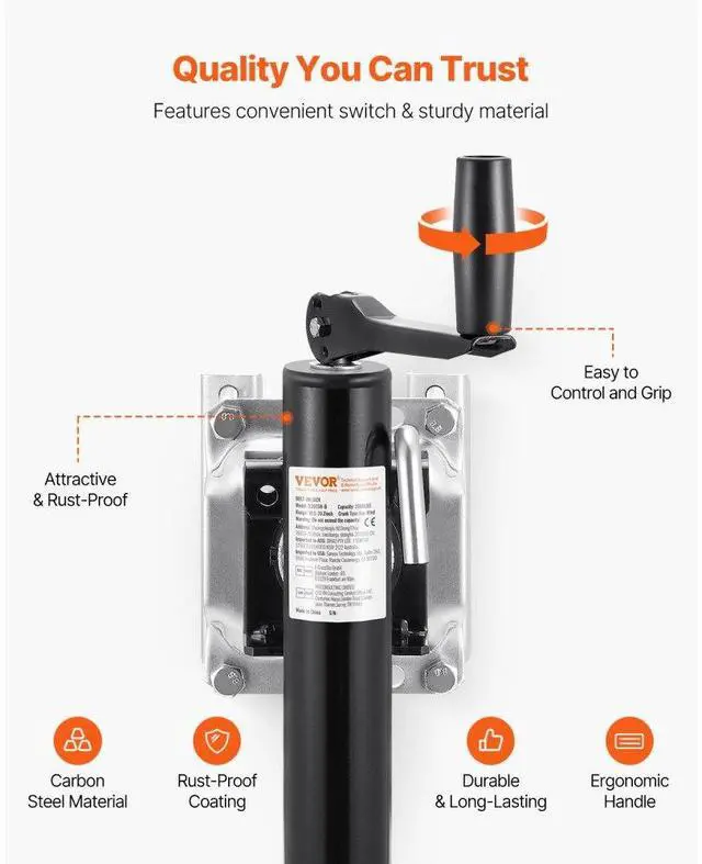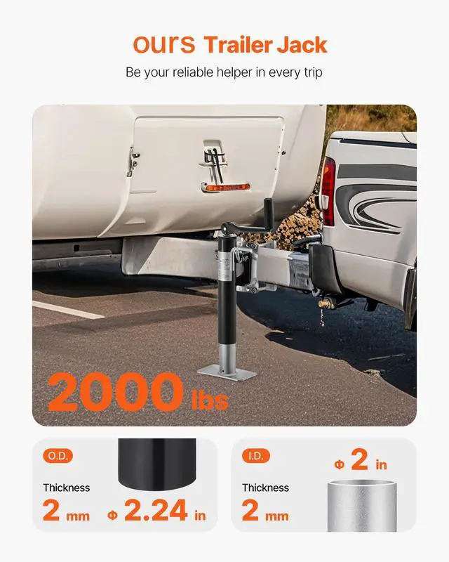 Trailer Jack Bolt-on Trailer Tongue Jack 2000 lbs Dynamic Load 10" Travel Powerful Load Capacity Quality You Can Trust Complete Installation Accessories Easy Height Adjustment Suitable for Various Vehicles