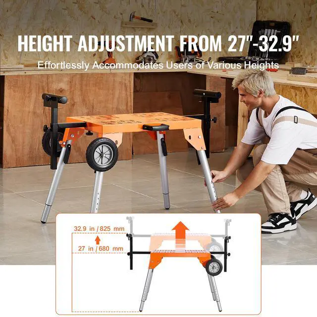 Miter Saw Stand with Tabletop and Wheels 330lbs Load Capacity Adjustable Your Ideal Work Companion Height Adjustable Portable & Space-Saving Adjustable Support Arms Quick Installation Heavy-Duty