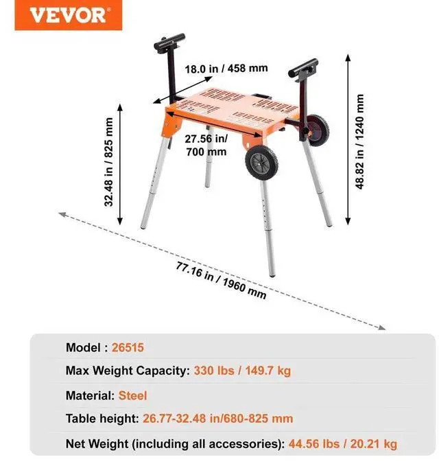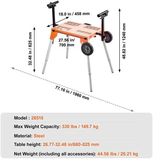Miter Saw Stand with Tabletop and Wheels 330lbs Load Capacity Adjustable Your Ideal Work Companion Height Adjustable Portable & Space-Saving Adjustable Support Arms Quick Installation Heavy-Duty