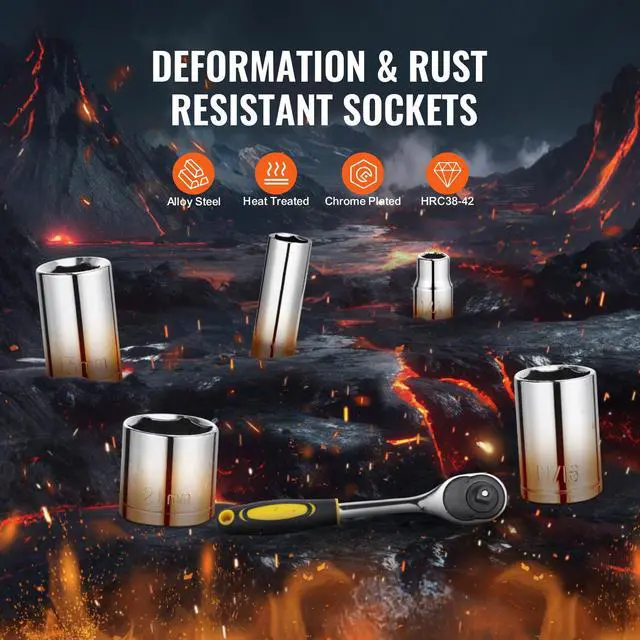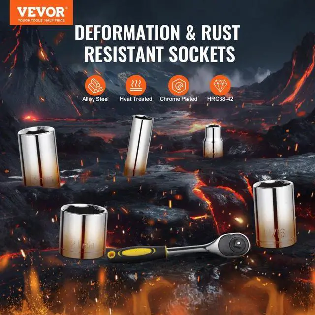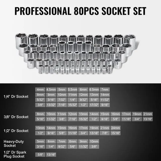 VEVOR 207-Piece Mechanics Tool Set 1/4" 3/8" 1/2" Drive Sockets SAE and Metric High-Quality Construction Comprehensive Socket Set Expanded Reach Precision Work Assistants Cutting & Gripping Hex Wrenches