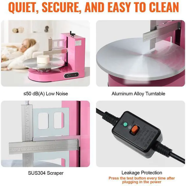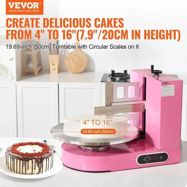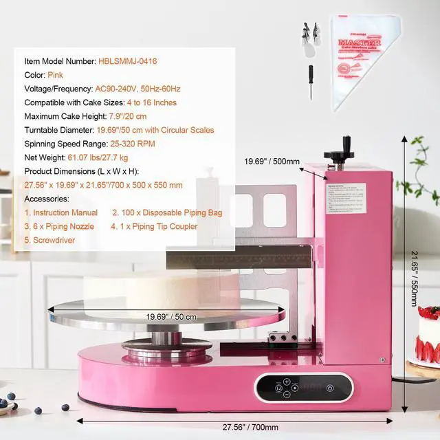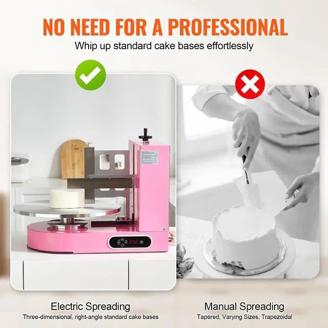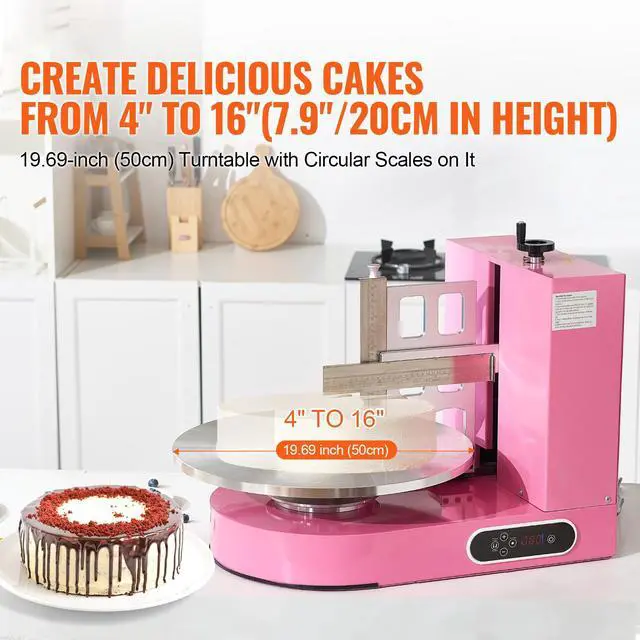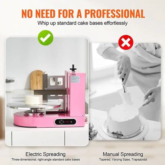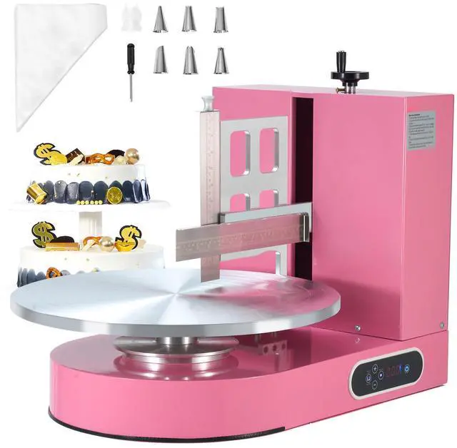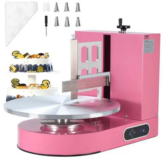 VEVOR Cake Decorating Machine Cake Frosting Spreading for 4" to 16" Cake Pink Efficient Spreading Standard Cake Simple Operation Quiet and Steady Wide Application Sturdy Structure Voltage/Frequency: AC90-240V, 50Hz-60Hz, Compatible with