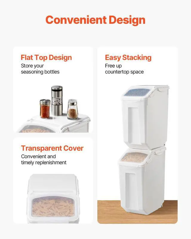 4.5G al/20L Large Ingredient Storage Container Airtight Kitchen Flour Bin Large Capacity Multiple Damp-Proof Design Easy-to-Clean PP Material Effortless Mobility Thoughtful