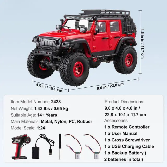 Remote Control Car 1:24 Scale Full Lighting 4WD Off-Road Truck for Kids Beloved Toy Terrain Conqueror Powerful Operation Lighting at Night Long Runtime Ideal Present