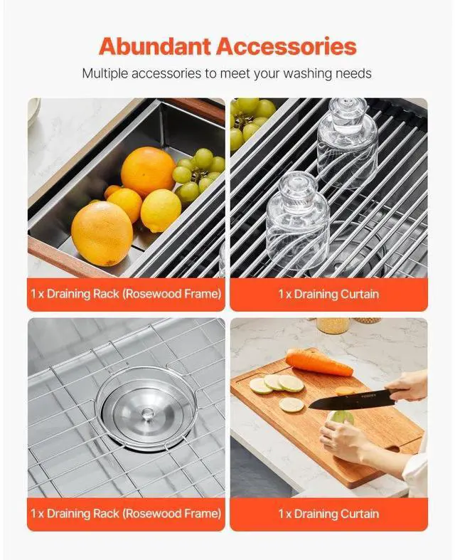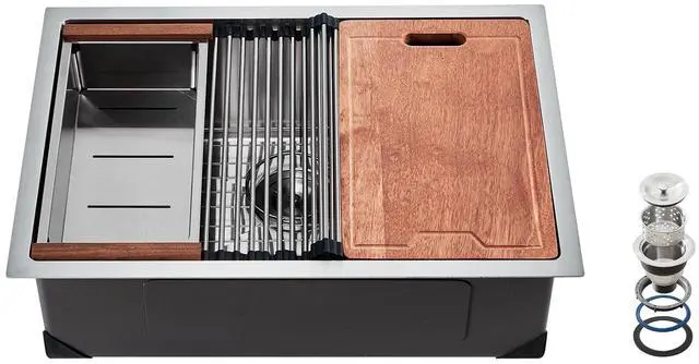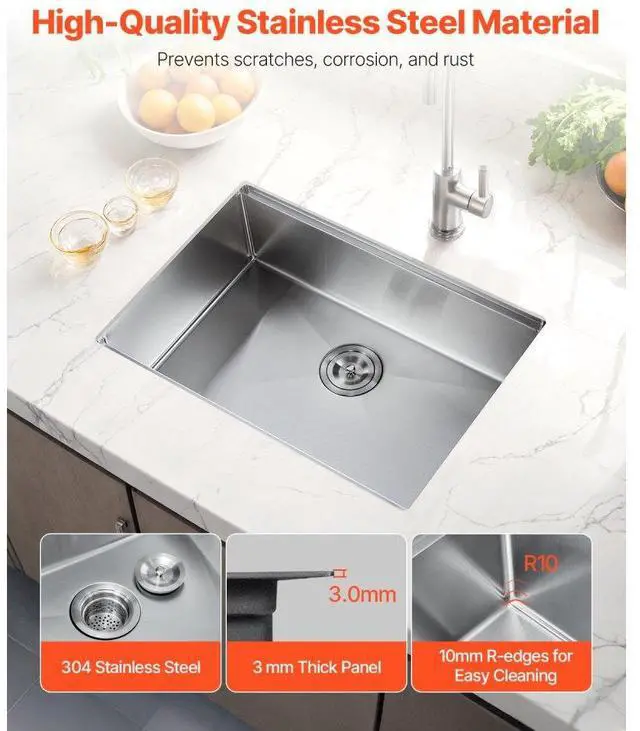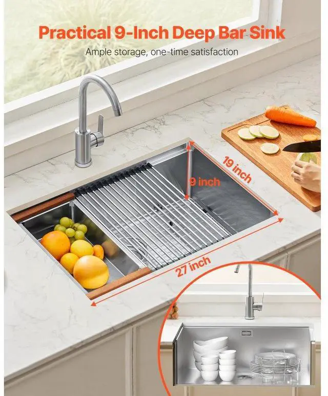 27" Kitchen Sink Undermount Single Bowl Drop-In Basin Stainless Steel Bar Practical Design Premium Stainless Steel Material Soundproofing and Anti-Condensation Technology Quick and Thorough Drainage Design Abundant Accessories Undermount Sink Installation Bowl