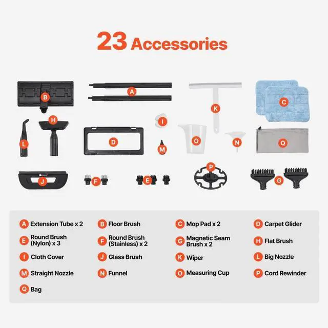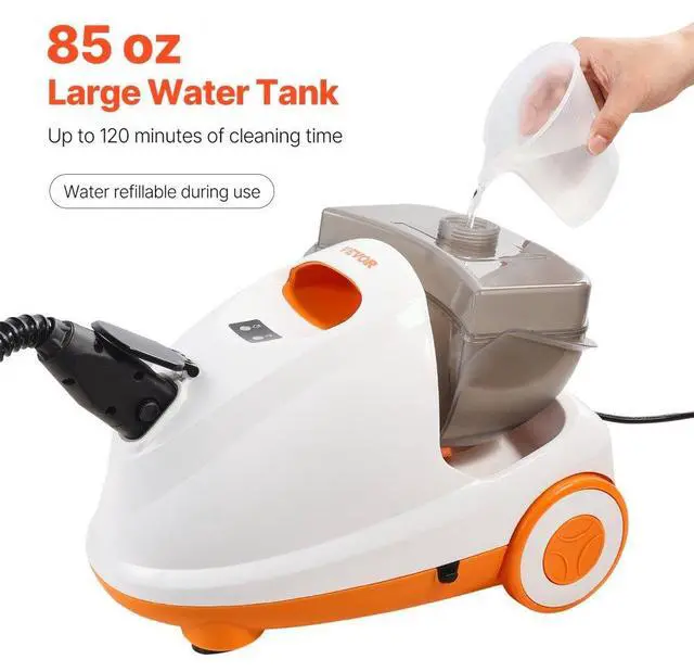 2000W Steam Cleaner Multipurpose Steamer with 27 AccessoriesHousehold Steamer with 51 oz Large Water Tank for Cleaning, Heavy Duty Rolling Cleaning Machine for Carpet, Floors, Windows and Cars 85 oz Steam Cleaner Quick Steam Heat-Up 85 oz Large Water Tank 23 Accessories Included Wide Cleaning Reach Wide