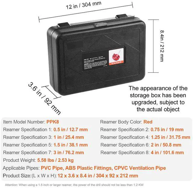 Product Size: 12 x 3.6 x 8.4 in/304 x 92 x 212 mm, Reamer
