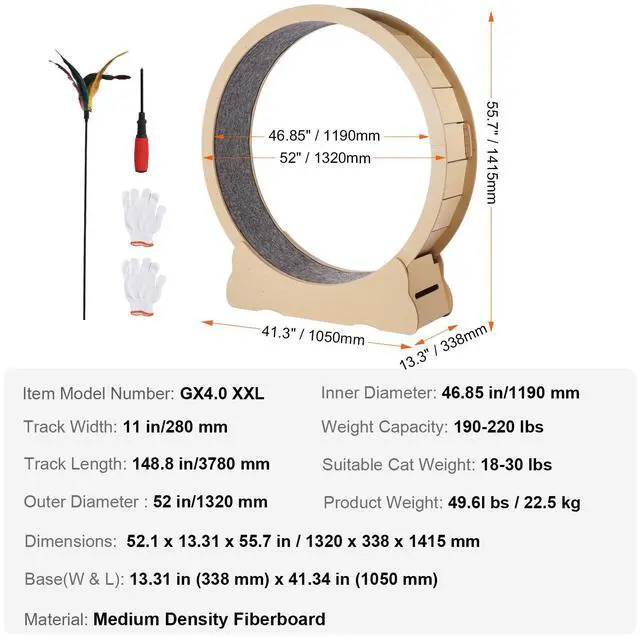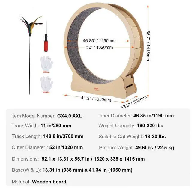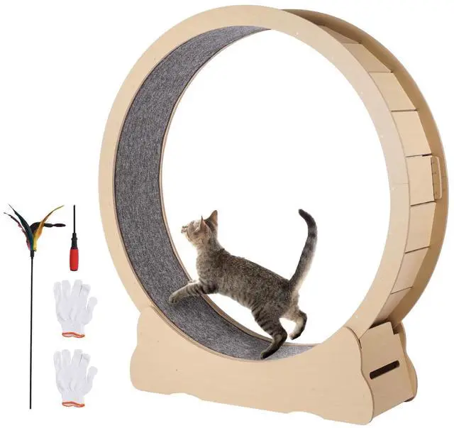 Wooden Cat Exercise Wheel 52" Large Cat Treadmill Wheel for Indoor Cats Quiet and Noise Reduction Large Inner Diameter Considerate