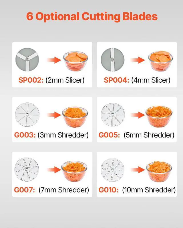 Food Processor Vegetable Chopper w/ 6 Blades Food-Grade Stainless Steel Blender Multi-Function Food Processor Rapid Chopping Easy Blade Replacement Thoughtful Design Wide Application Peace of Mind