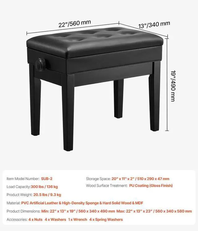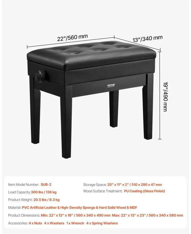 Adjustable Piano Keyboard Bench Storage Padded Seat Wooden Vanity Bookcase Stool Adjustable Piano Bench High-security Metal Hinges Scratch-resistant and Easy to Clean Sturdy and Durable Construction Easy Assembly Anti-slip