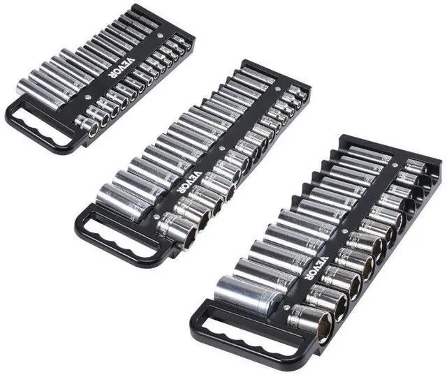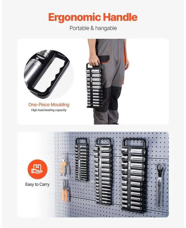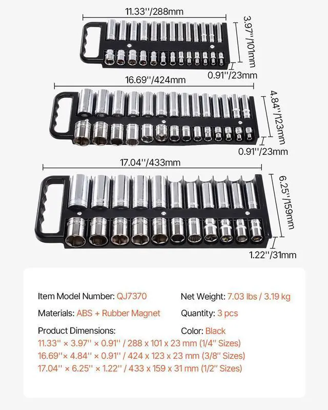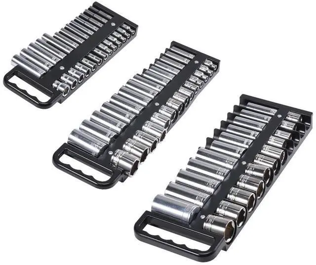Portable Socket Organizer Set 3PCS 76-Clip Magnetic Socket Tray Metric/SAE Efficient Storage Easy to Carry Durable and Strong Versatile Storage Flexible Adjustment Cost Efficiency 16.69 ''× 4.84 '' × 0.91 '' / 424 x 123 x 23 mm (3/8