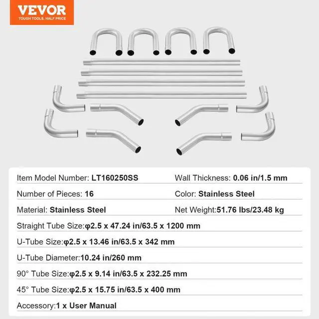 DIY Universal Exhaust Kit 16 Pieces Exhaust Pipe Kit with Slip-Fit Joint Custom Exhaust Pipe Kit Enhanced Exhaust Efficiency Galvanized Carbon Steel Construction Easy to Install Primary Use Sound Customization Number of