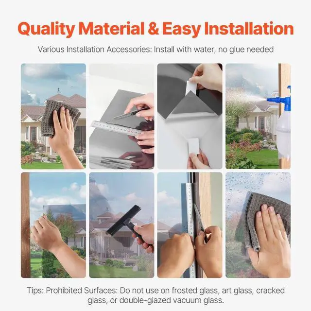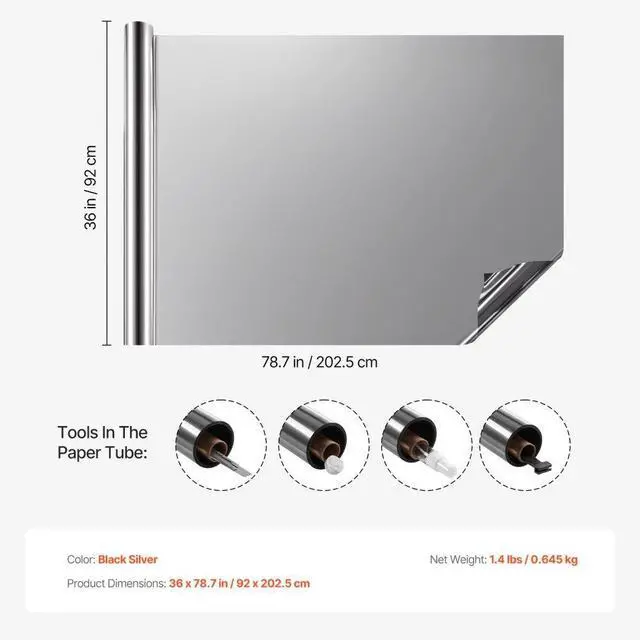One Way Mirror Privacy Window Film Static Cling Daytime Tint Black-Silver Enjoy Personal Time Shielding from Harmful Rays and Temperature Control Energy Efficiency and Comfort Daytime Privacy Protection Easy Installation Wide