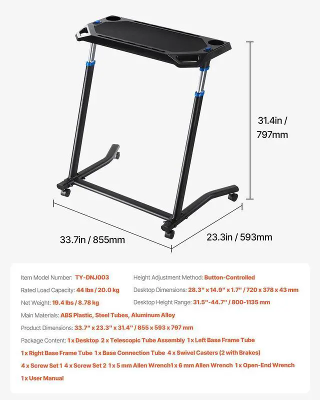 Desktop Height Range: 31.5" - 44.7" / 800-1135 mm
