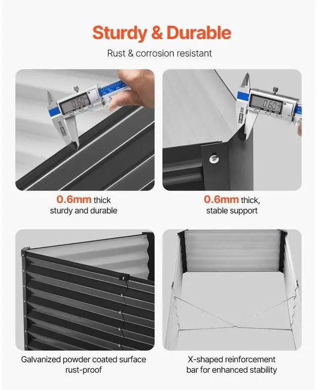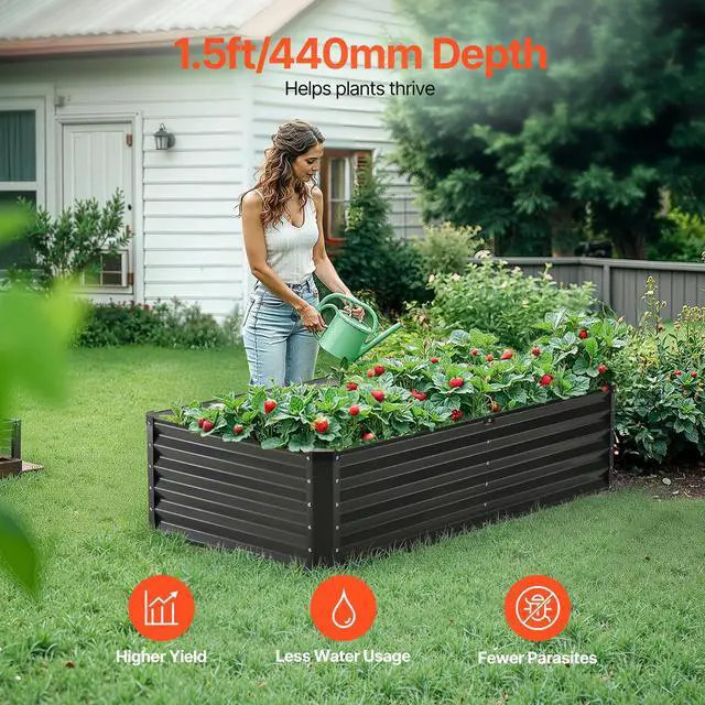 Metal Raised Garden Bed 6x3x 1.5 ft Outdoor Galvanized Planter Box Dark Gray Spacious Growing Area Durable and Long-Lasting Material Safe and User-Friendly Design Easy to Assemble Versatile Usage Multiple Options Available