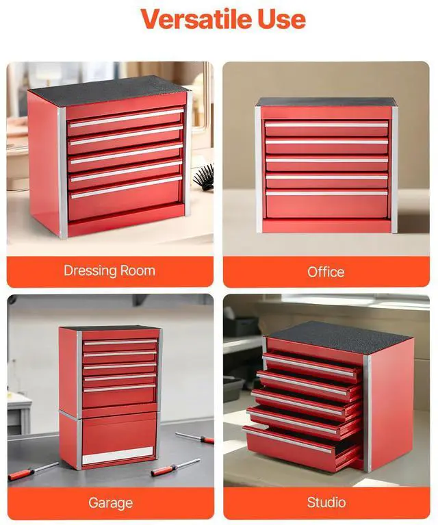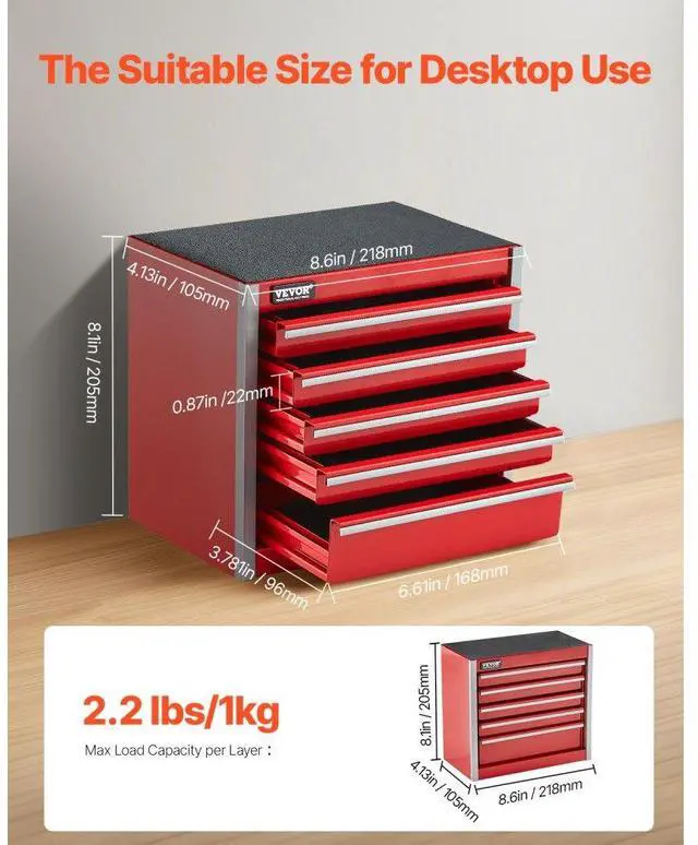Tool Box 8.6 -inch Portable Metal Tool Box with 5 Drawers Tool Organizer Red Mini Multi-layer Toolbox Organized Storage Sturdy & Durable Versatile Use Present Option Shock Absorption