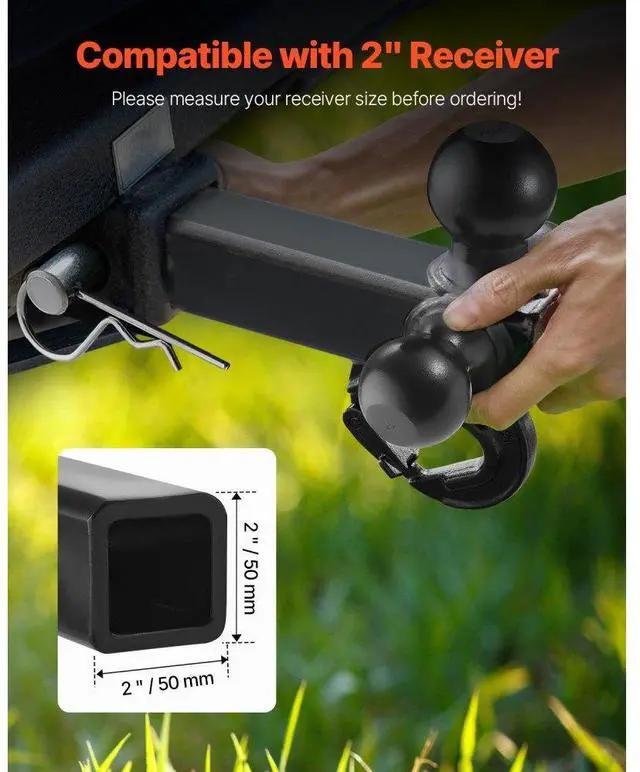 Trailer Hitch 2" Receiver 1-7/8" & 2" & 2-5/16" Tri-Ball Hitch with Hook Trailer Hitch Ball Mount Standard Height Design Outdoor Use Easy to Use Secure Towing Easy