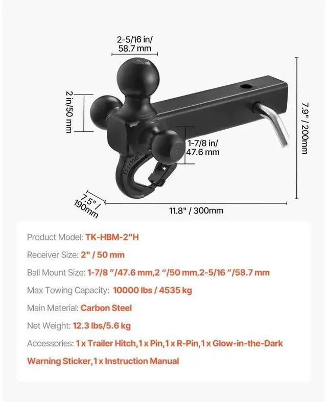 Product Dimensions: 11.8 x 7.5 x 7.9 in/300 x 190 x 200 mm (Trailer Hitch without Ball),