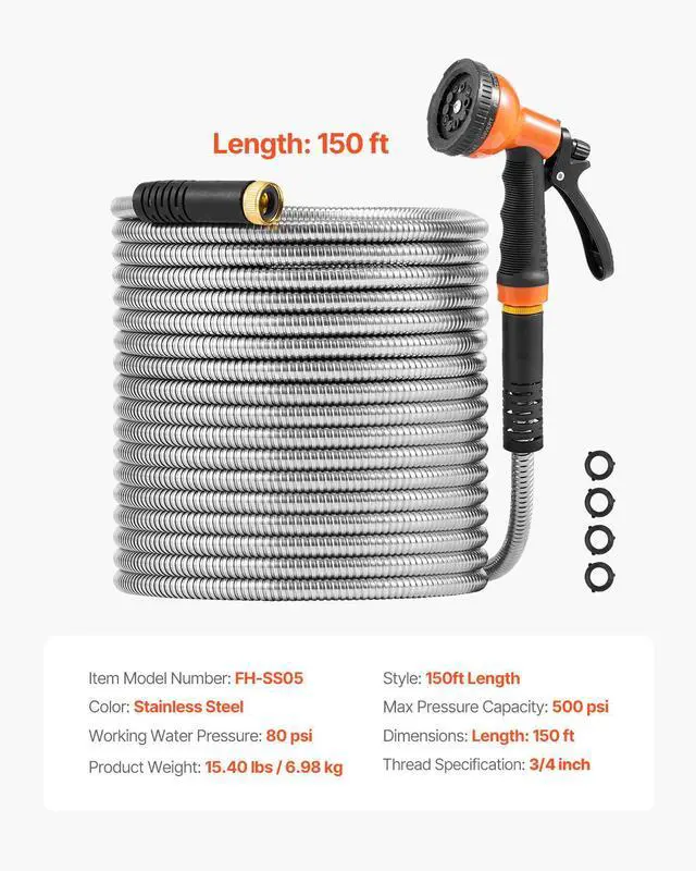 • 150ft Metal Garden Hose Stainless Steel Water Hose Lightweight No Kink
