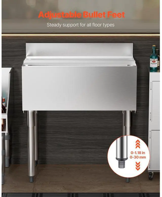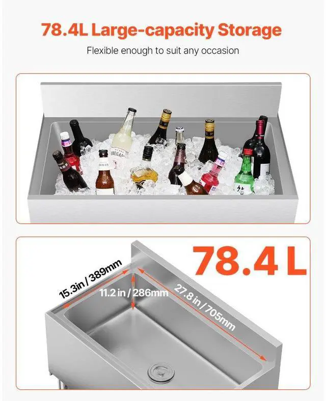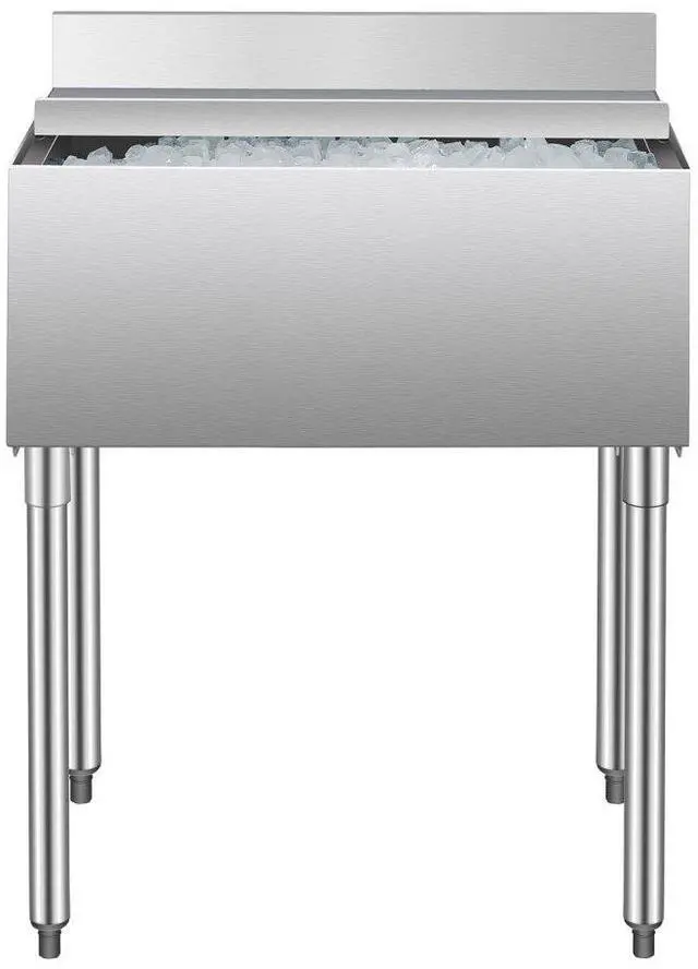 Commercial Ice Bin 78.4 L Underbar Ice Bin with Sliding Lid and Bottle Holders Commercial Ice Bin Premium Stainless Steel Build Rapid Drainage Multi-functional Bottle Holders Widely Applicable Secure & Sturdy