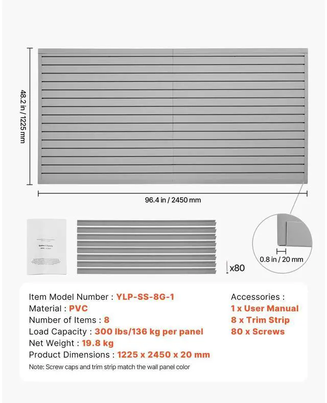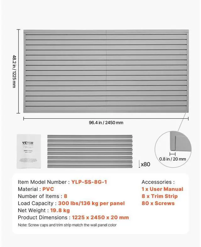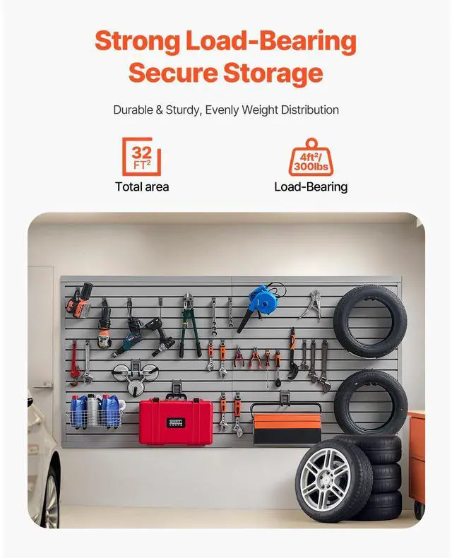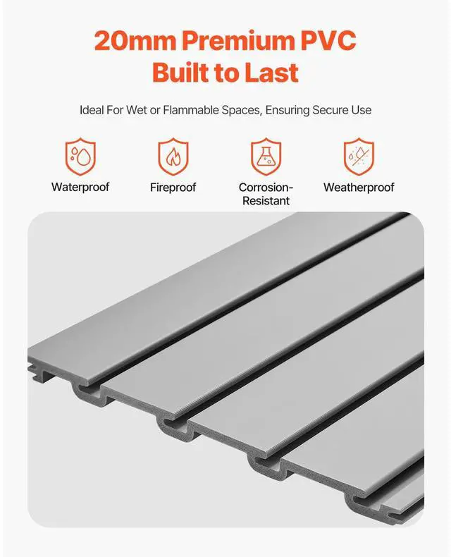Newly upgraded second-generation 8 x 4 ft Slat Wall Paneling PVC Grey Garage Slatwall with Modular Design Powerful Functionality Stable and Durable Flexible Storage Elegant and Stylish Convenient to Use Easy to Clean